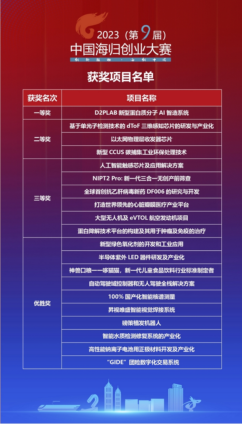 復賽項目按照行業分組進行路演,由來自啟迪創投、華軟資本、晟唐創投、中信建投、寅宜投資、北汽投資、杉杉創投、民生證券等機構的35位資深投資人組成評委團,從團隊、技術、市場、財務四個維度進行評審打分,確定20個項目晉級決賽。在決賽中,由來自中泰證券、財通創新、創客幫投資、蘇高新創投、華鍔投資、乾融控股、毅達資本的7位專業評委對晉級項目作出最后評定。最終,“D2PLAB新型蛋白質分子AI智造系統”項目奪得桂冠,“基于單光子檢測技術的dToF三維感知芯片的研發與產業化”“以太網物理層收發器芯片”“新型CCUS碳捕集工業環保處理技術”3個項目獲得二等獎,“人工智能觸感芯片及應用解決方案”等6個項目獲得三等獎,另有10個項目獲得優勝獎。