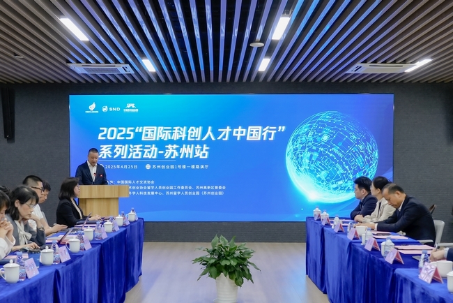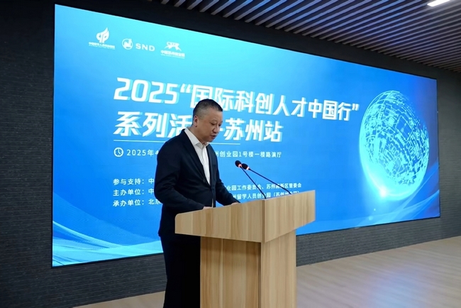 4月25日,2025“國際科創(chuàng)人才中國行”蘇州站活動在蘇州高新區(qū)蘇州留學人員創(chuàng)業(yè)園舉辦。蘇州高新區(qū)管委會副主任沈琰出席活動并致辭。